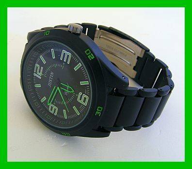 BLACK METAL JUSTIN WATCH WITH NEON GREEN FACE
