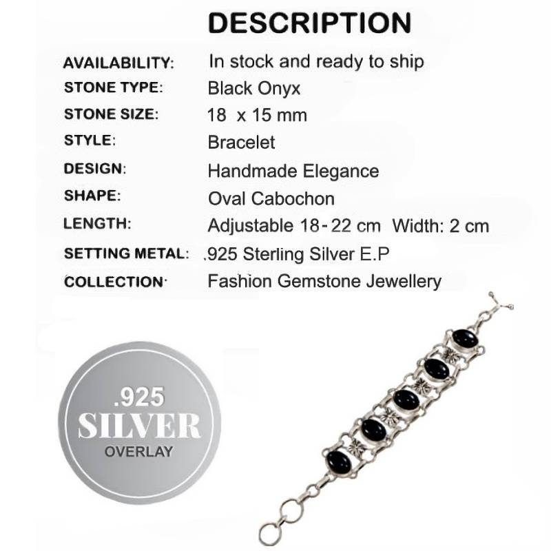 HANDMADE BLACK ONYX OVALS GEMSTONE BRACELET