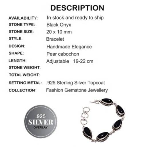 HANDMADE BLACK ONYX CABOCHON GEMSTONE BRACELET