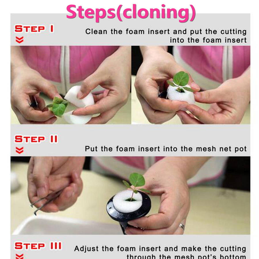 Package weight: 0.03 kg Specification: Material: Plastic Color: Black Size: Size #1 Bottom Diameter: 27mm Top Outside Diameter: 49mm Height: 35mm Size #2 Bottom Diameter: 37mm Top Outside Diameter: 57mm Height: 35mm Features: 1. Suitable for cloning machine, Hydroponic and Aeroponic systems. 2. Made of plastic material, durable and environmental protection. 3. Foam insert Designed for cloning machine, support plant growing in Hydroponic and aeroponic systems. 4. Scalable foam can be also used to seed germination. Notice: Please allow 1-3cm error due to manual measurement and make sure you do not mind before ordering. Please understand that colors may exist chromatic aberration as the different placement of pictures. Package Included: 10 Pcs Mesh Pot +10 Pcs Foam