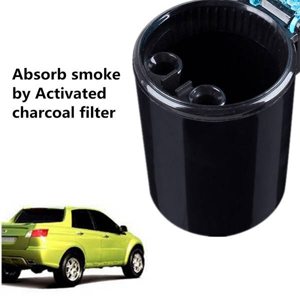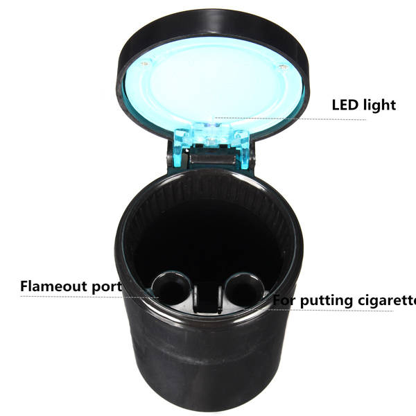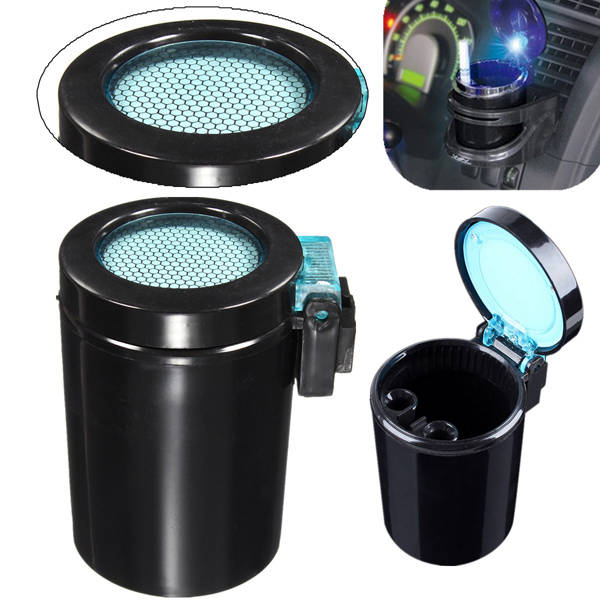Package weight: 0.16 kgBlack Portable Car LED Blue Light Ashtray Auto Travel Cigarette Ash Holder CupFeatures:1. Absorb smoke by activated charcoal filter, effectively reduce the harm of secondhand smoke on others by super suction.