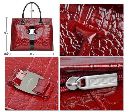 Black & Red Women Handbag OL Lady Crocodile Pattern Tote Bag