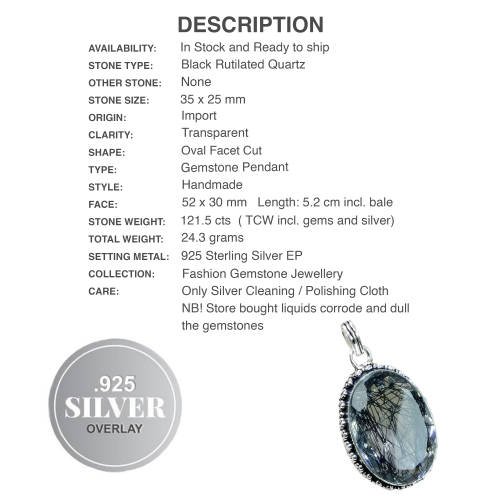 HANDMADE BLACK RUTILE QUARTZ GEMSTONE PENDANT