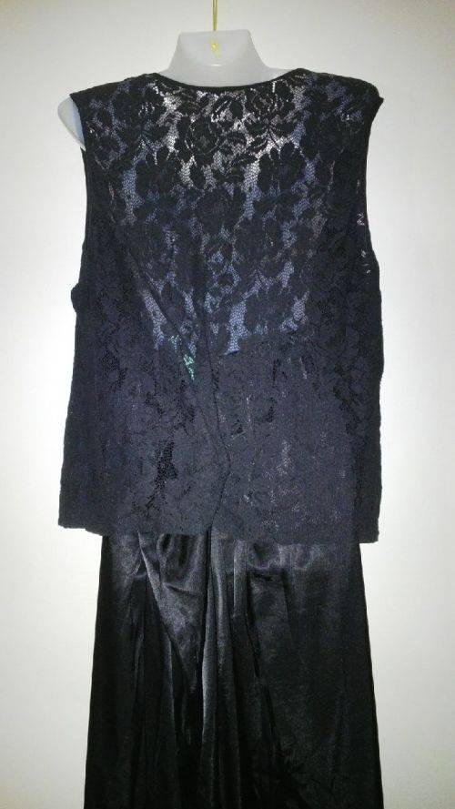 Black satin and lace pyjamas by Cacique (has tear along left side seam 7cm long - can be repaired) otherwise in Very good condition