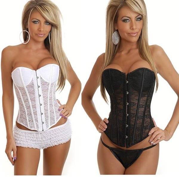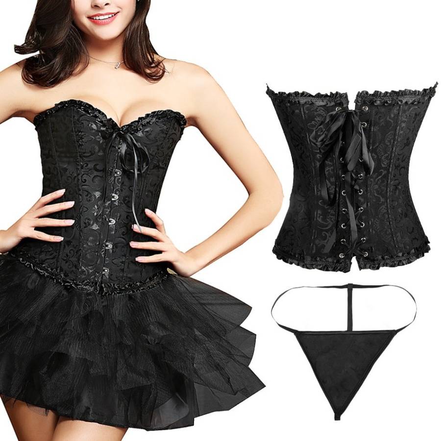 Black Satin Victorian Style Overbust Corset & Matching G-String
