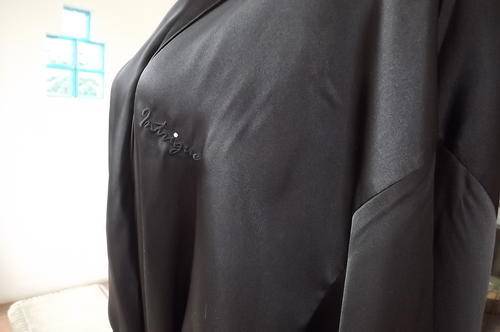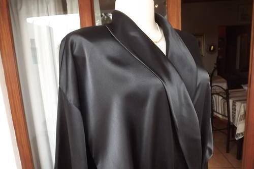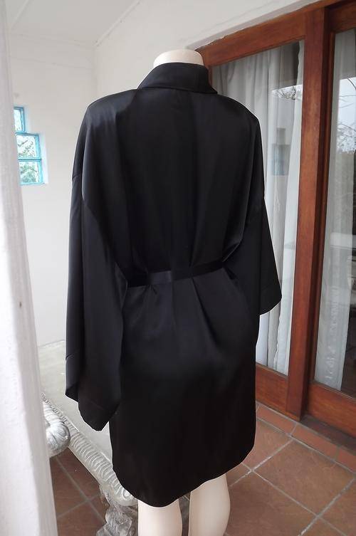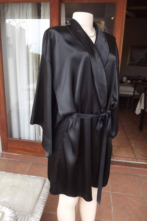 Black silky Intrigue night gown.Cross over with wide sleeves.Size 42-44(Large).With collar.As new