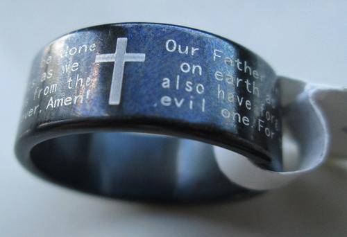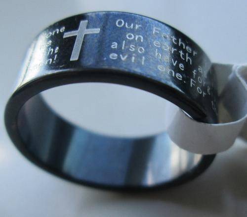 Black Stainless Steel Ring - The Lord's Prayer Ring - Christian Ring Size 17