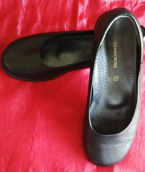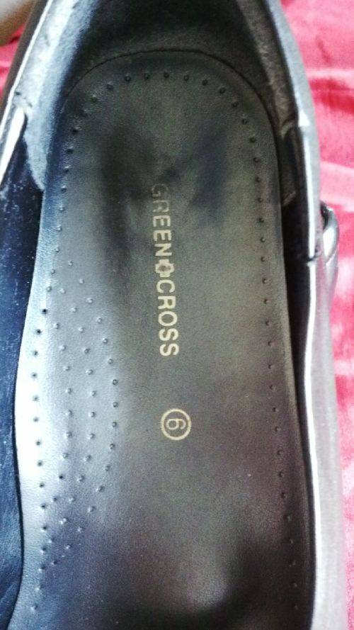 Black super soft leather slipons by Green Cross, worn once in Very good condition. I believe these shoes are leather uppers but there is no label.