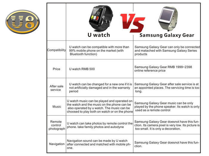 Black U8 Smartwatch Bluetooth Watch Passometer Touch Screen Answer and Dial the Phone