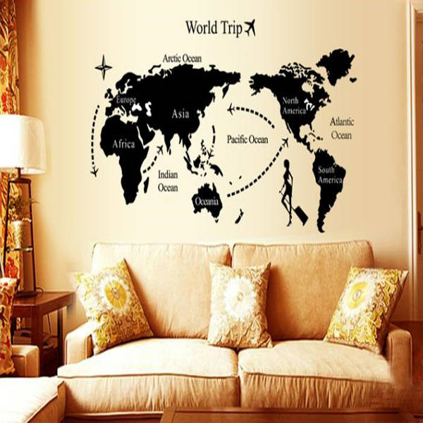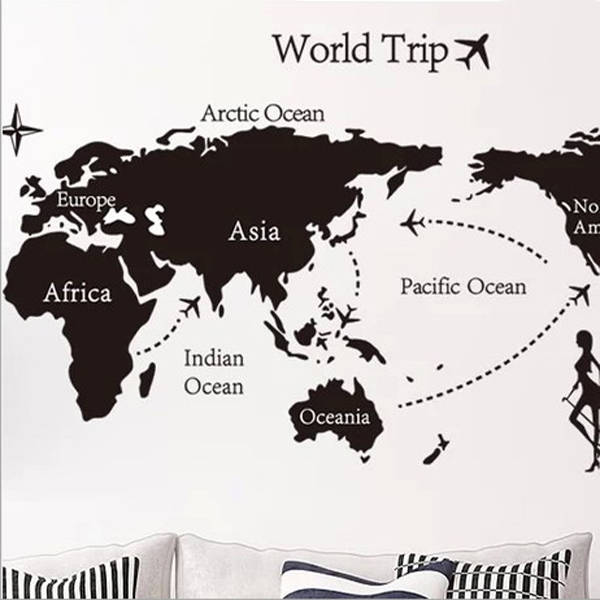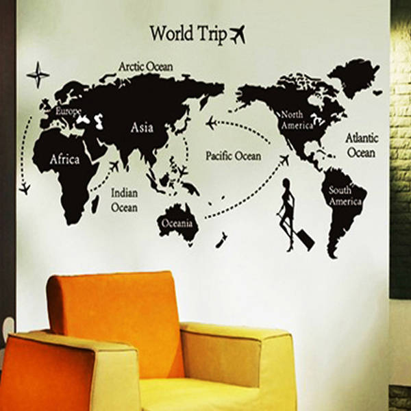 Black Universal Travel World Map Wall Sticker Eco-friendly Decoration