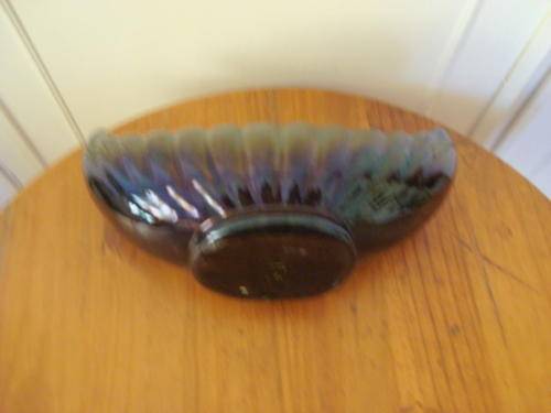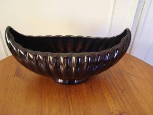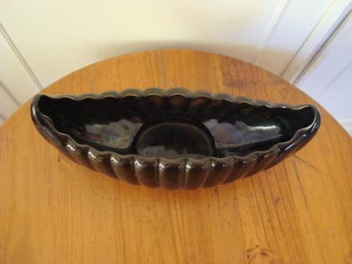 Nicely shaped black vase, in good condition, meaures 290mm x 110mm. Has a purplishness colour to it.