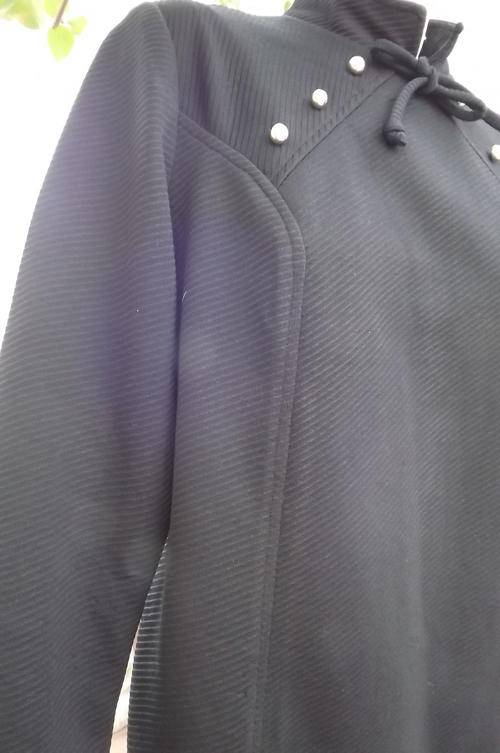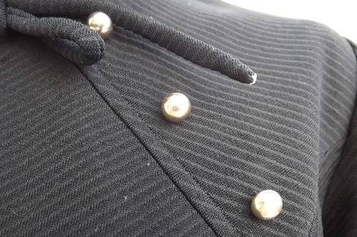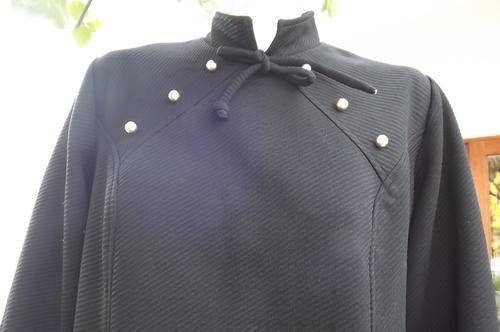 Black Vintage Crimplene Dress with High Neck in size 12/36 by Miladi not Milady's - must be from 1940/50's - still in good condition - buttons and stitching decoration on front of dress