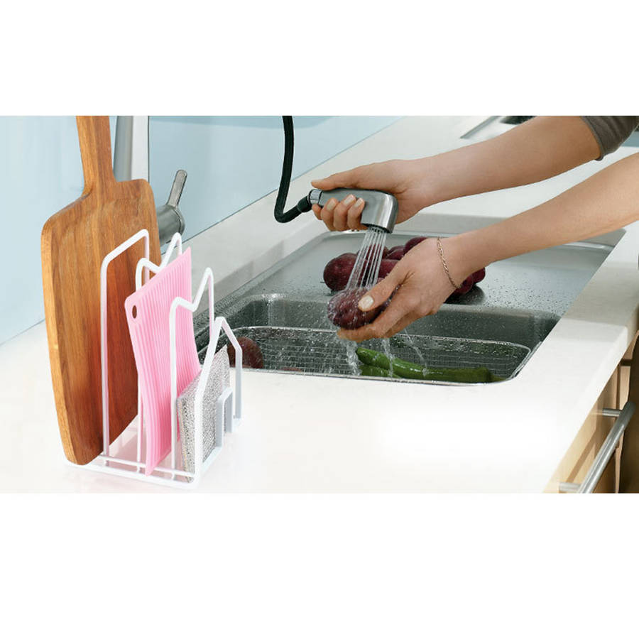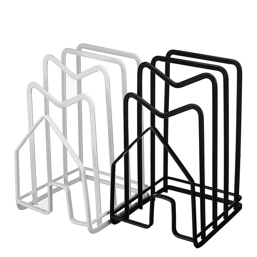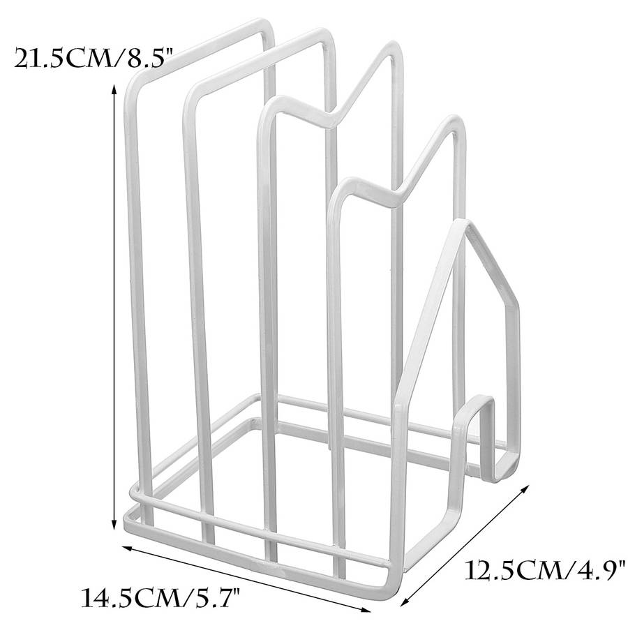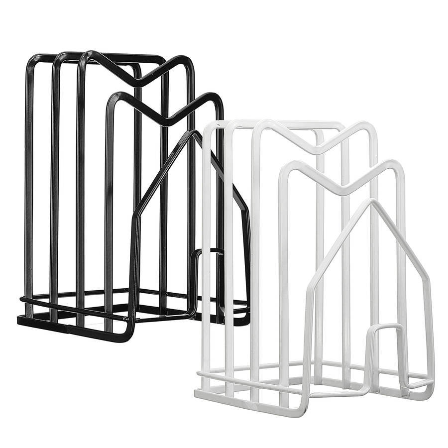 Description: This vinyl storage rack is designed to organizer book, lids, plates, baking sheets, cutting boards, and more with ease.