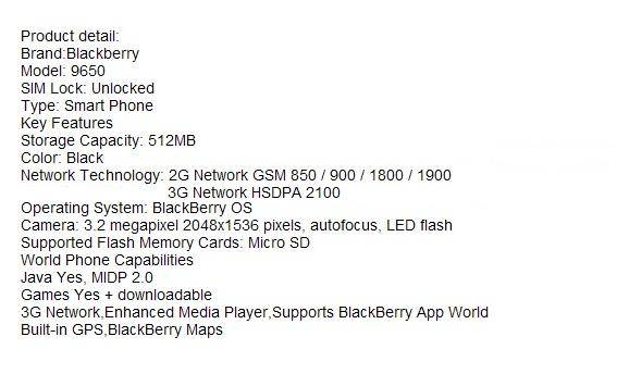 BlackBerry Bold 9650 Unlocked Mobile Phone 3G Wifi 3.2 MP GPS +free 8GB Memory Card