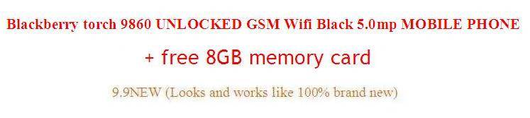 Blackberry torch 9860 UNLOCKED GSM Wifi Black 5.0mp CAMERA MOBILE PHONE+free 8GB memory card