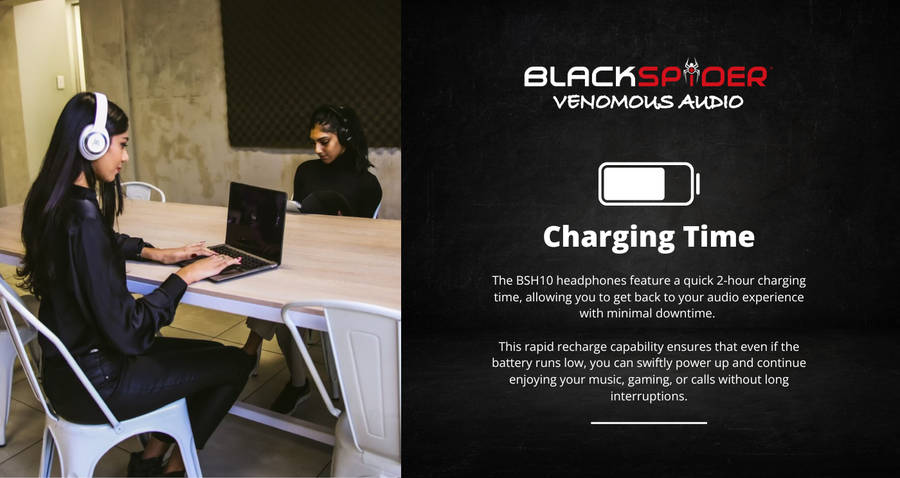 Each pair of headphones comes with a USB charging cable and a 3.5mm audio cable for wired listening.