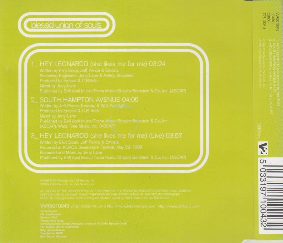 Blessid Union Of Souls - Hey Leonardo (She Likes Me For Me) (CD Single)[Jewel case used]
