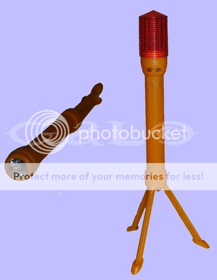 DESCRIPTION *This blinking emergency light can save your life when stranded at night alongside a dark road. *They make a great gift for anyone. FEATURES *Blinking light. *Compact design for easy storage with your other car tools. *Swivel tripod feet to stand upright on almost any terrain. *When needed take of the red cap and use as a flashlight. *Although batteries are included we do not guarantee that they work but all lights will be tested before shipping. *All images are under copyright law and all brand names and trademarks are the property of their respective owners.