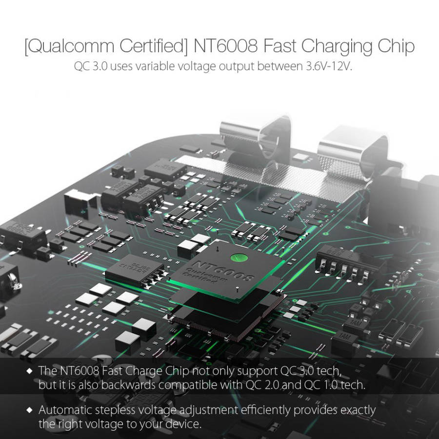 Designed wih SANYO/Panasonic Li-ion Battery, BlitzWolf the NT6008 fast chargingchip is not only supports QC3.0 fast charge tech but also backwards compatible with all versions of Qualcomm Quick Charge technology (1.0, 2.0 & 3.0). Also compatible with USB Type-C and can provide standard charging for non-Quick Charge devices.