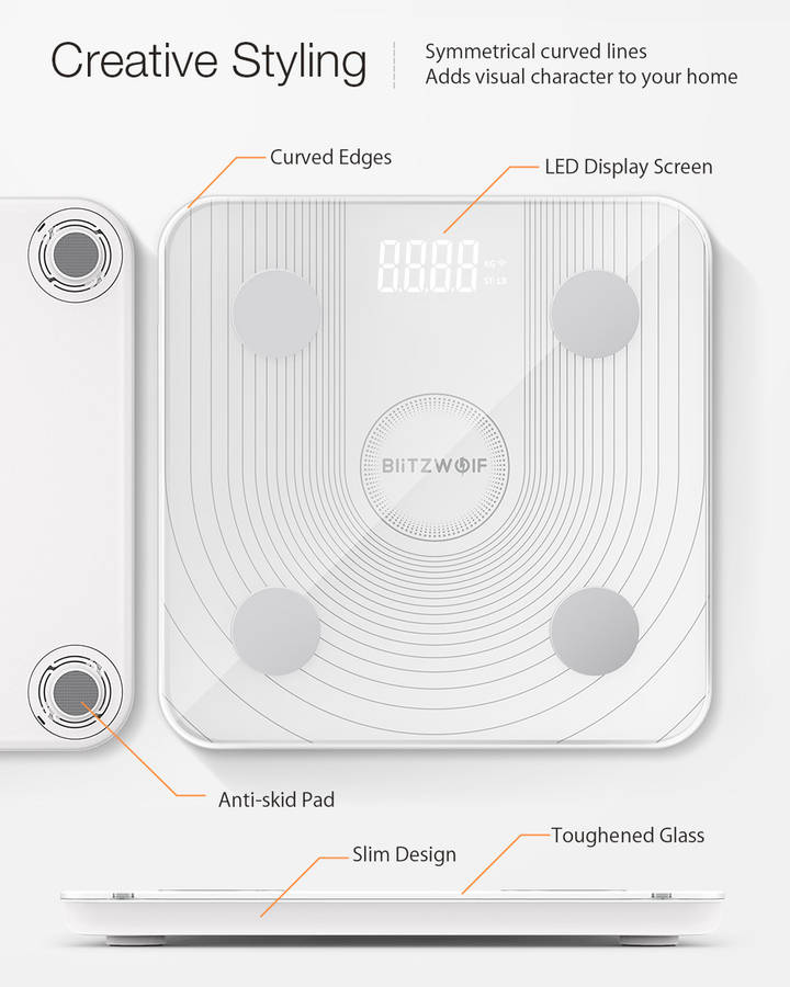 Main Function | -Body Fat Weighting Scale with "G" Sensor -Accurate BIA Chip, BMI Data Analysis -WiFi Connection, Smart APP Control -All-round Health Data with 13 Body Metrics -Dual Weighting Modes |