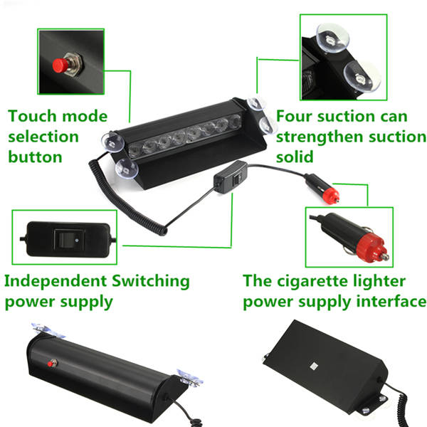Blue 8 LED Emergency Strobe Light Car Cigarette Break Light