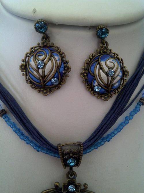Blue bedazzled pendant Necklace & EARING SET. GORGEOUS. (only one)