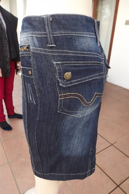 Blue denim skirt in pencil style.Pockets front and back.Slit at back.Size 30/6.By DAN LILAI fashion