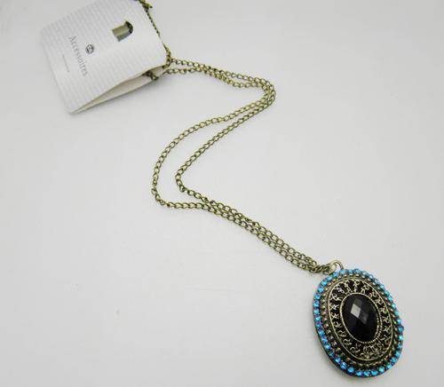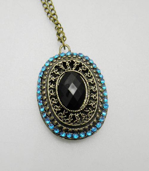Blue Diamante Retro style copper Oval Pendant Necklace