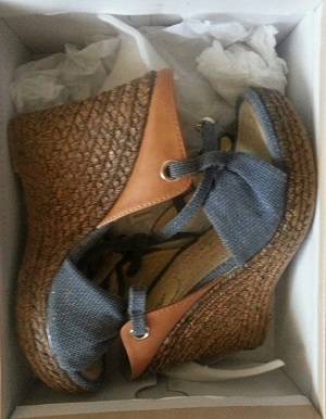 Blue Flone Wedge Peep Toe Shoes Size 5