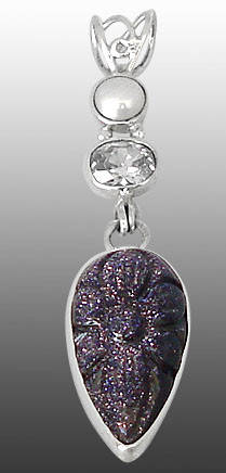 Detail Blue Goldstone Carved 13x25mm Pear, White Topaz 6x8mm Oval Cut, Pearl 6mm Round Cab