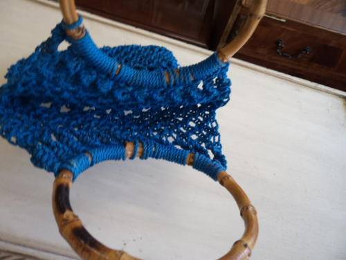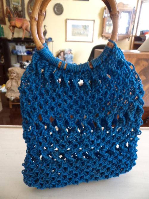 Blue handbag with wooden handle. size:height 37cm. width 24cm.