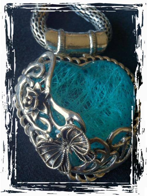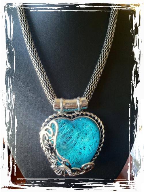 BLUE HEART BUTTERFLY PENDANT ON MESH NECKLACE