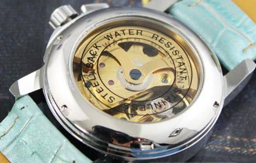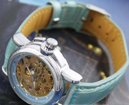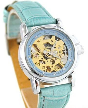 Blue Ladies AUTOMATIC Skeleton watch with crystals
