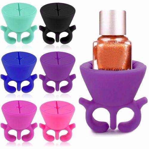 BLUE NAIL POLISH BOTTLE HOLDER - FITS ON YOUR FINGER TO PREVENT SPILLING AND SMUDGING