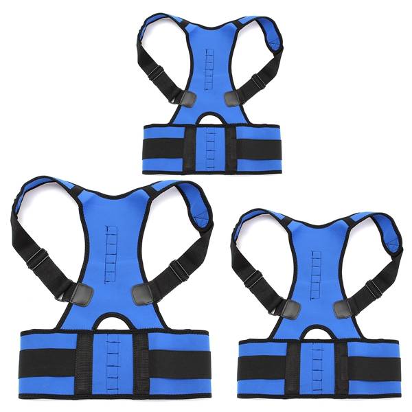 Blue Neoprene Magnetic Adjustable Back Support Brace Posture Corrector Lumbar S
