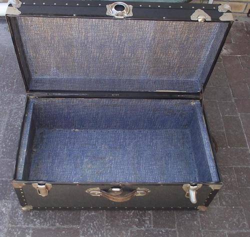 THE INNER TRAY IS MISSING ONE OF THE HINGE HOLDERS IS MISSING THERE IS A LITTLE BIT OF RUST TO METAL CORNERS IT LOOKS NICE AND WOULD BE IDEAL AS PART OF THE FURNITURE