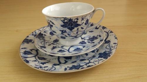 Blue & White Plate & Cup and Saucer Set. size of plate: width 19cm. Cup: height 7cm. width 9cm. saucer: 14cm.