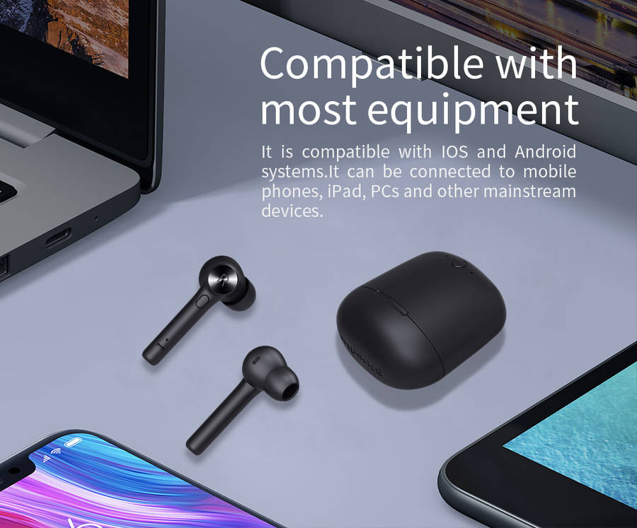 Support face recognition: take off the earphone and automatically pause ( supported by the right earphone ) Stylish appearance, ultra-small size Fit your ear perfectly for comfortable wearing With charging box for long duration Clear talking and premium sound quality