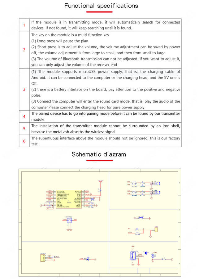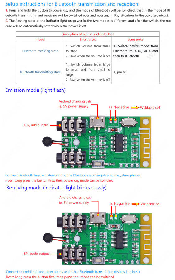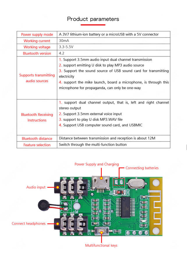 Bluetooth 4.2 Wireless Audio Transmitter Receiver Board 3.7V~5V 10M Distance MP3 Decoding Wireless M