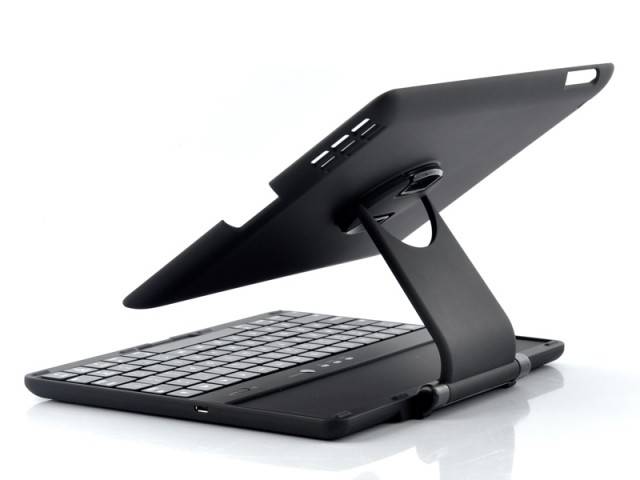 Hard protective cover for ipad 2 and the new ipad featuring a 360 degree rotation head and a wireless bluetooth QWERTY keyboard.