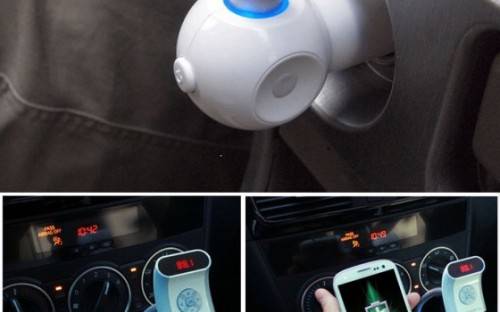 Wireless transmit phone call and music from Bluetooth mobile phone to the car FM stereo system.