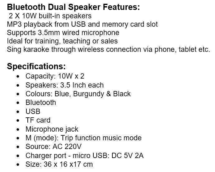 Bluetooth Multimedia Dual Sub-woofer Speaker With USB / SD / AUX / FM Radio & Microphone Jack