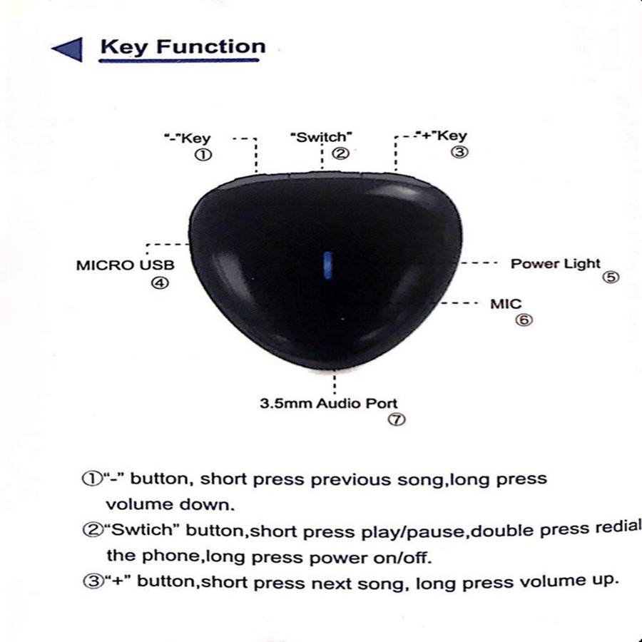 5. Rechargeable Battery 100mAh- Provides about 7-9 hours of music play time,10hours talk. It charged quickly only need about 1 hours.