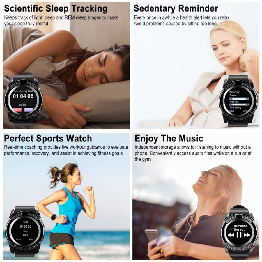 Bluetooth V8 Smart Watch Sports Fitness - White, Pink, Black - Color selection required