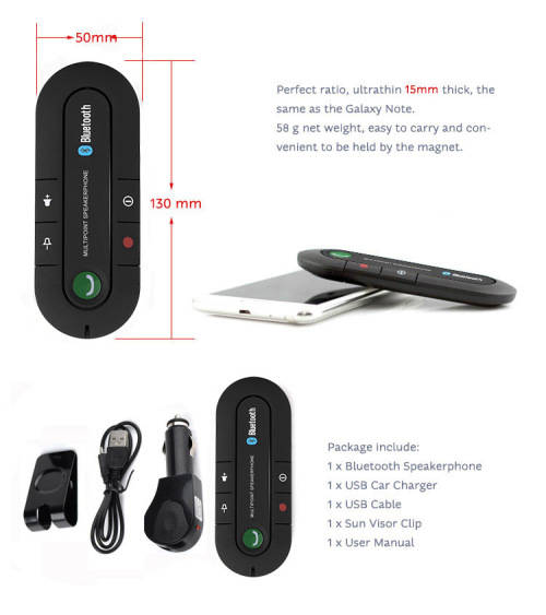 The bluetooth visor speakerphone car kit is a portable, lightweight, mini-sized hands-free device with an elegant design.