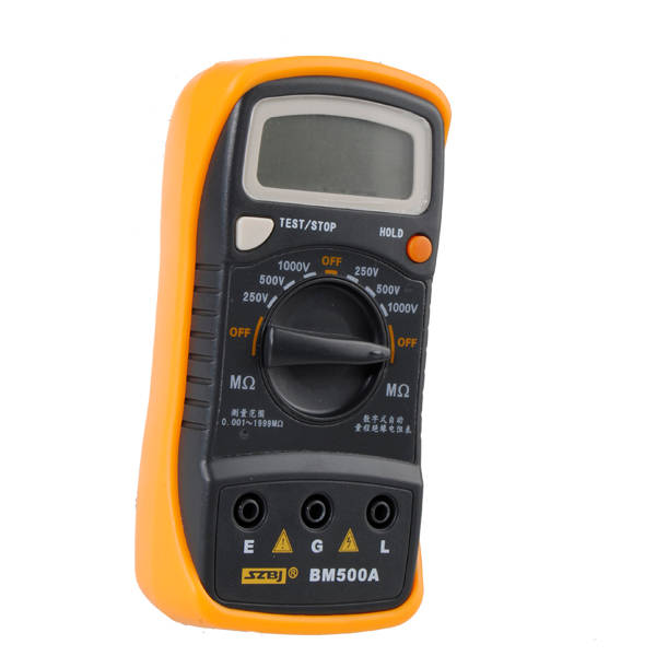 BM500A 1000V 1999M Digital Insulation Resistance Tester Meter Megohmmeter Megger Multimeter MODEL : BM500A Auto Range : yes Low Battery Warning : yes Digital insulation resistance tester with data hold function. High voltage output light warning. Specification : Maximum Display : 1999 Insulation resistance measurement voltage : 250V, 500V, 1000V Insulation resistance measurement range : 0 - 2000Mw Short circuit current : no less than 2mA Test accuracy : ± 5% ± 5 Power supply : 1 x 6F22 9V Dimensions : 138x 69 x 31mm