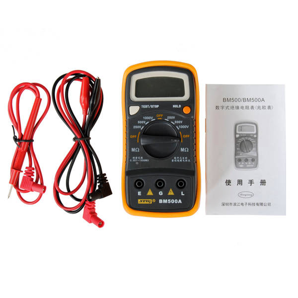 Package includes : 1 x BM500A 1000V 1999M Digital Insulation Resistance Tester 2 x Test lead Red&Black 1 x 9V Battery for your convenient working :) Comes in color retail gift box.