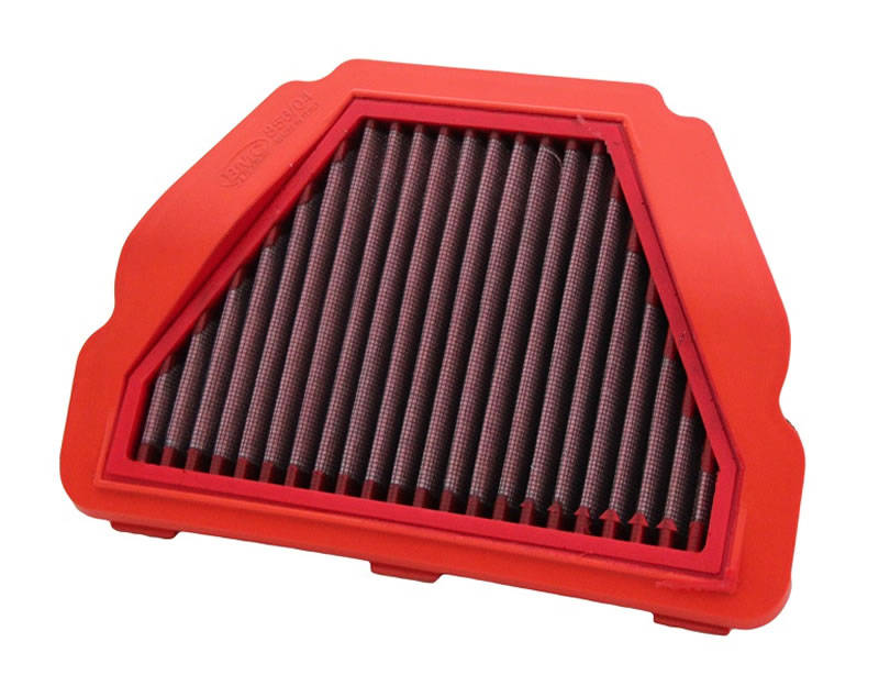 Better than OEM Filters: OEM paper filters present an elevated resistance to the passage of air and consequently a reduction in engine performance. Compared to a paper filter the BMC air filter permits a notably higher air flow passage, producing less than half the Pressure Drop (difference between the air pressure before and after the filter element) over the paper filters. This doesn't compromise the filter's engine protection efficiency, thanks to the combination of the different oiled layers, containment of all impurities is guaranteed as far as 7 microns, while paper filters generally require total filtration of particles as small as 10 microns. So BMC air filters let more air into the engine while still protecting it better than paper ones. In addition, a traditional paper filter must be replaced regularly during routine maintenance whilst the BMC air filter is reusable and has a general life-span equal to that of the motorcycle.