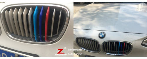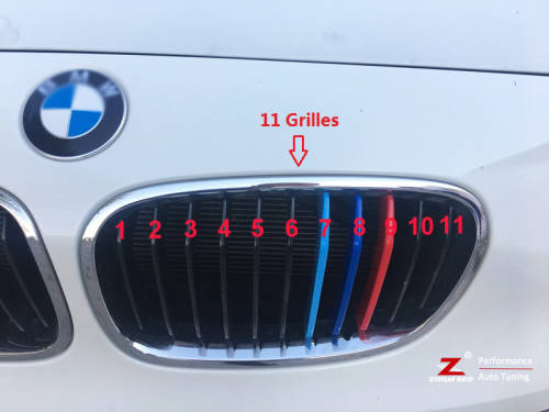 This listing features one set of M-sport heritage stripes in the BMW Motorsport colors for the 2012 upwards 1-Series. This M-stripe grille is made from ABS plastic that does not fade and is easy to install in just a few minutes. Start at the end closest to the headlight and simply clip on the the Mugelo Red insert at the third grille location and then clip on the Daytona Violet and Avus Blue insert respectively.