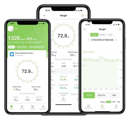 Feelfit App automatically synchs body composition data with popular health apps such as "Apple Health Kit", "Google Fit" and "Fitbit".